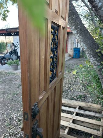 wood doors and heavy thick real wood doors, iron door is heavy and glass is not cracked or chipped. Doors are priced separately. Doors just need to be sanded and repainted.