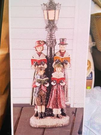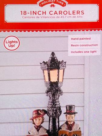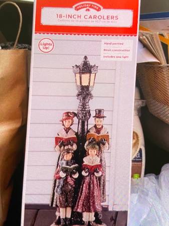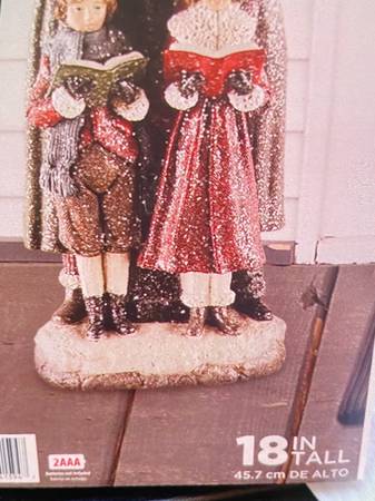 18-inch carolers, hand-painted, lights up, requires 2 AAA batteries, not included, asking $30.