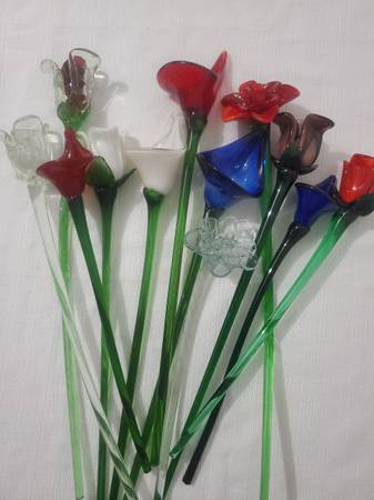 Collectable art / glass art / floral design art / long stem flowers / Bouquet