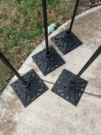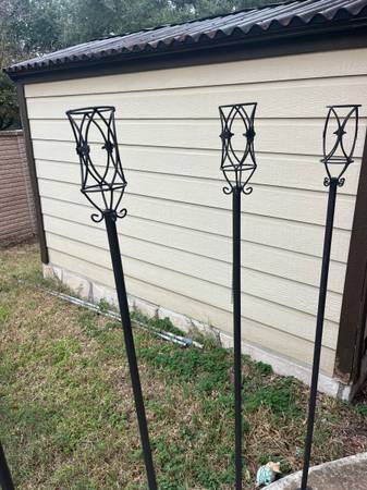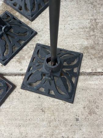 Cast Iron Torch Stand with Metal Pole: This portable cast iron stand is ideal for quickly and easily placing torches in any outdoor space without the commitment of a stationary torch. Secures poles up to 1 inch in diameter. A set of 4