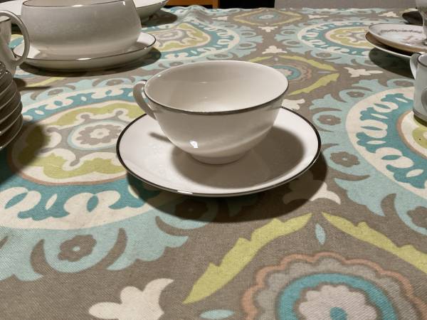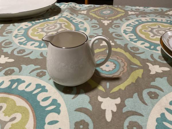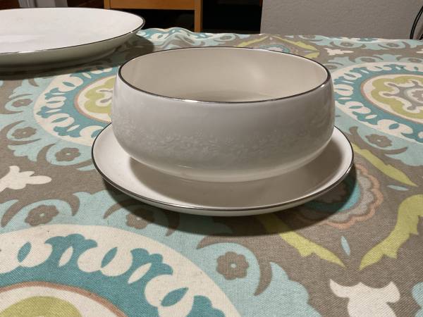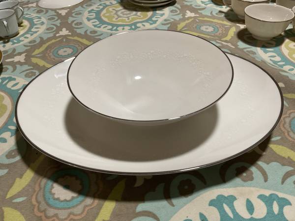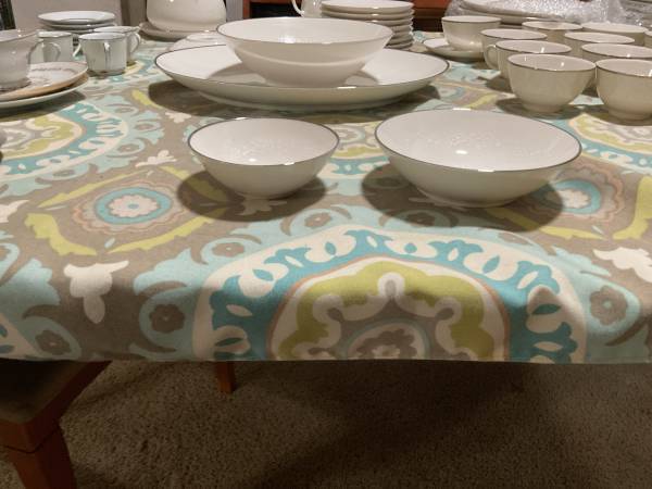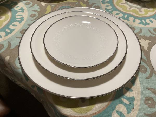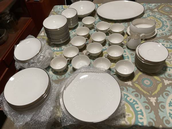 10 large Plates. 1 large Bowl. 1 creamer pitcher. 1 sugar bowl 13 coffee cups. 11 Saucers. 1 Gravy boat. 1 Platter. 10 Finger bowels. 12 small plates. 11 salad plates. Reply by text only, cash...
