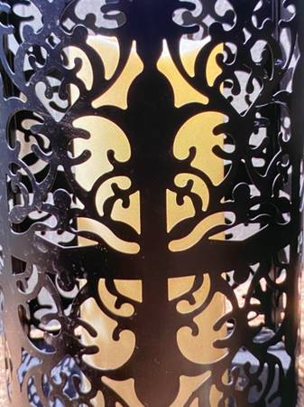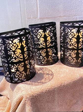 # Decorations Artificial candles in Black Metal holders can be hanged on the wall or just put on the stand, furniture. Height: 9.5", Lenght 6", depth: 4.5". Candles require 3 AAA batteries, not...