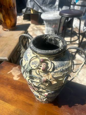 Unique ceramic vase with floral design. , perfect for decor. Delivery available for a small fee, depending on location. Located near Bitters and 281. Width 10 inches Height 11 inches