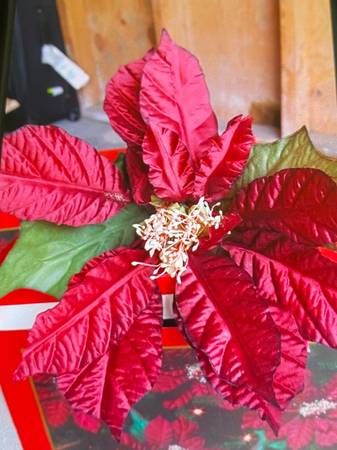 Dillard's 2 set of 6 burgundy poinsettia ornaments pics