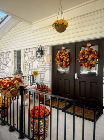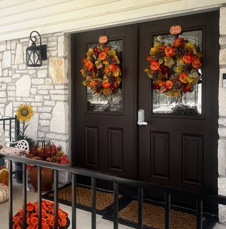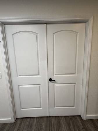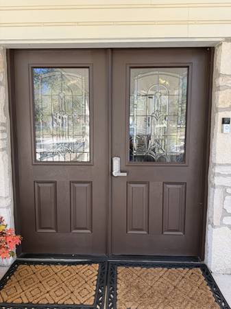 Beautiful solid wood double doors in excellent working condition. They open and close smoothly with no issues. I am selling them only because I upgraded to wrought iron doors.