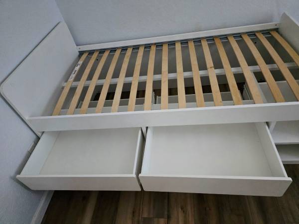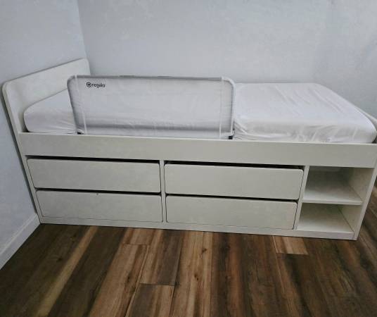 Selling IKEA bed with drawers and cubbies, in good condition. Comes with guard rail/mattress if wanted. Must pick up, can disassemble prior if that makes it easier as it is heavy. Smoke/pet free...