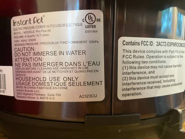 Instant Pot Pro Plus Wi-Fi Smart 10-in-1, Pressure Cooker, Slow Cooker, Rice Cooker, Steamer, Sauté Pan, Yogurt Maker, Warmer, Canning Pot, Sous Vide, Includes App with Over 800 Recipes, 6 Quart. Very good condions, some spots in the pot - see picture.