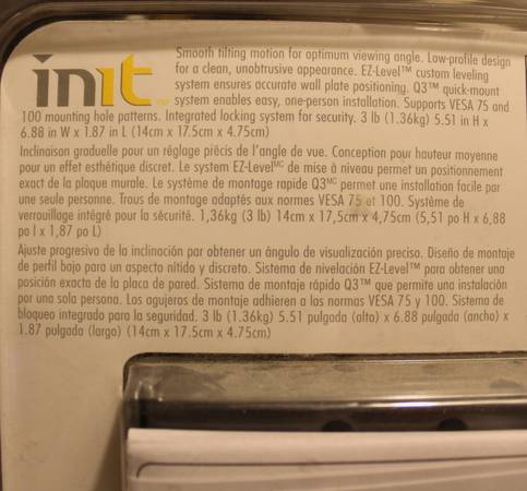 Brand New in package .. Tilting Wall Mount for Flat Panel TV of 13 to 30 inch TV .. Was $45 with tax at Best Buy .. Cash only .. Located by Exxon Higgins Rd 78217 (see red dot on map)