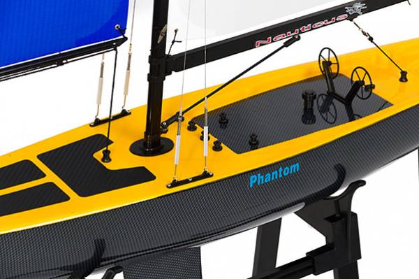 The Phantom is a very striking R/C Yacht and with its huge sail is built for speed. It comes in an easily identifiable yellow and carbon fiber effect hull which is based entirely on a racing yacht and molded in fiberglass with a perfect Gelcoat and enamel painted finish.