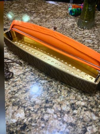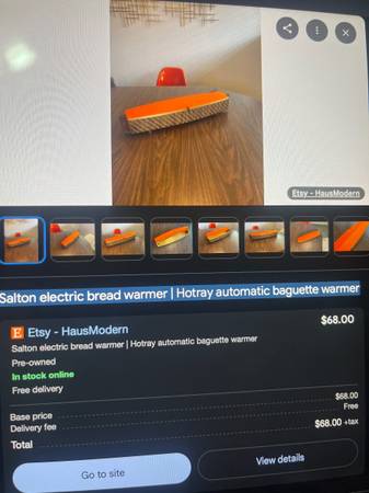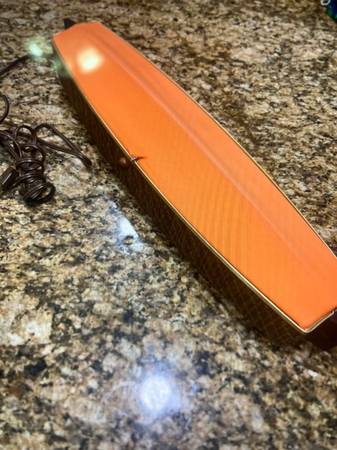 Vintage Salton Hot tray Bread Electric Warmer. Its orange cloth top and aluminum body and modern danish teak woven around the aluminum body with wood handles. Great for warming biscuits, bagels, croissants, bread, buns, rolls, bake goods for your guest at breakfast, brunch, or dinner parties. This is a must have bread warmer in every home.