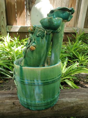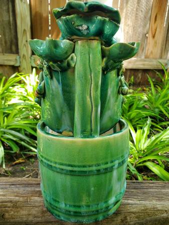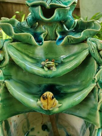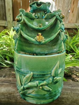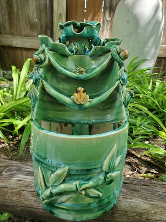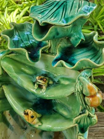 Water / Green Oriental Water Fountain / 3 Tier Water Feature / Table Top Soothing Water Fountain/ Ceramic Frogs Fountain / Relaxing Fountain