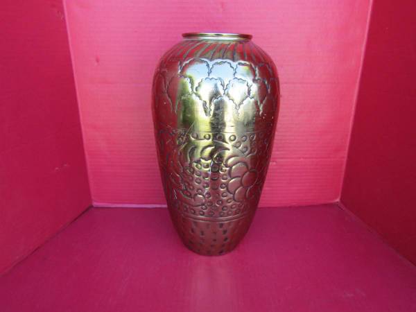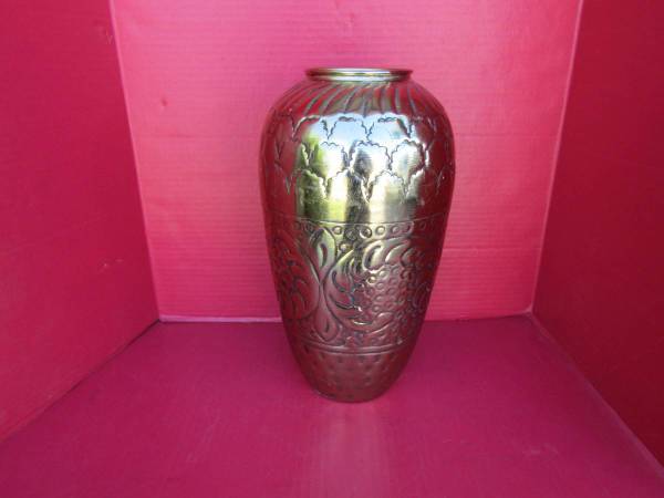 STEEL URN VASE HAMMERED HOME DECOR 14" x 7" DECORATIVE BRASS TONED FLOWER DESIGN