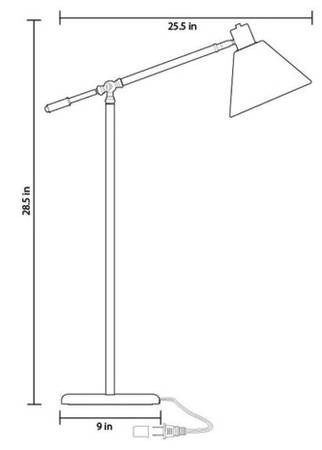 Recommended use of one 60 watt max medium base light bulb .. Measures 27 inch H x 25 W x 9 D ..