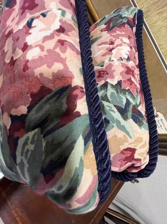 Vintage c.1980 matching pillows and valances Made exclusively for pier, one imports. Made of bar cloth type percale weave In excellent light new condition. Apparently never used 2 pillows each...