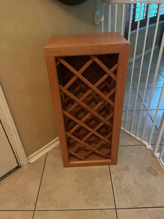 Kitchen Wine Rack cabinet holds 15 bottles horizontally to keep the bottle in place. Dimensions 36W x 15L If ad is up it is still available. No emails please. Must see to appreciate.
