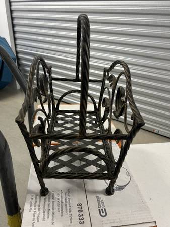 Selling a very nice wrought iron magazine holder. 16 inches wide 16 inches tall 9 inches deep. In great condition. MPU Call/text