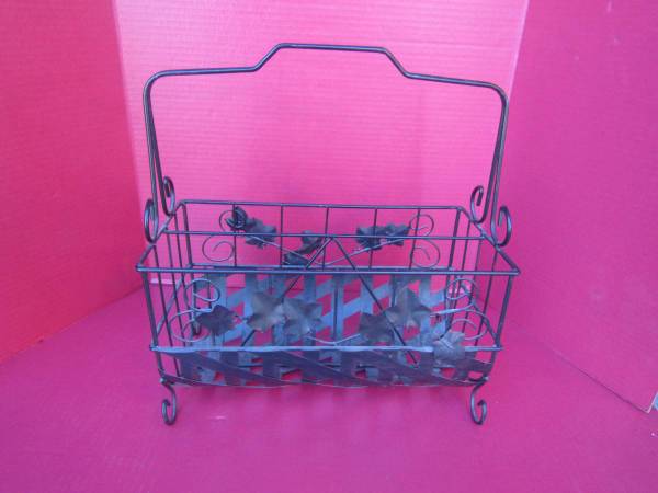 WROUGHT IRON METAL MAGAZINE RACK HOLDER 15" x 7.5" x 16.5" BRONZE