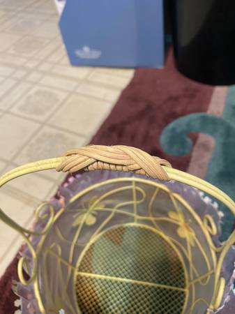 Decorative Yellow metal basket with butterflies and ribbon on the top, I have a lot of different kinds, materials, and styles to choose from if interested to check it out.