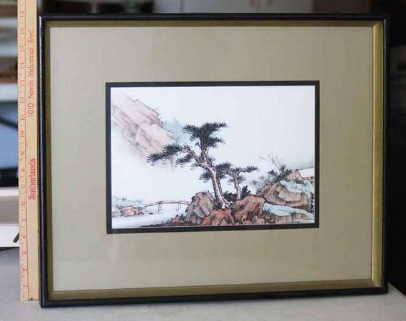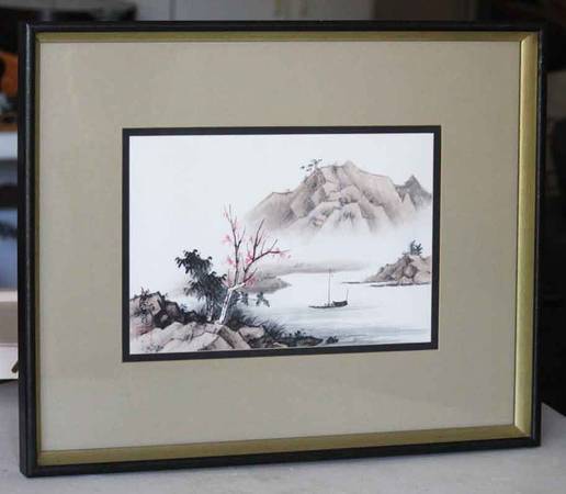 $50 for both matching large 21 in wide by 17 in high prints, originating from the time-honored traditions of Chinese Ink Wash Art. One featuring a “Cypress” with a bridge over a lake & mountains in the background. And the other a “Sampan” on a lake with mountains behind it. Both paintings in soft ink colors to bring the serene beauty of the Zen World into your home. Perfect for a living room, study, or bedroom, adding an element of tranquility and artistic depth to any décor.