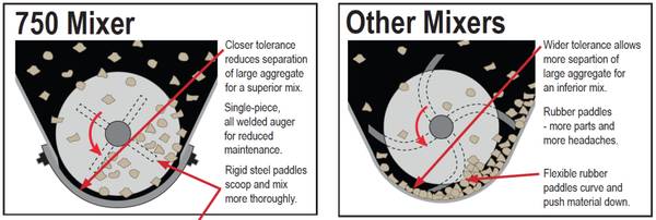 Tighter tolerances between the auger and trough means superior mixes