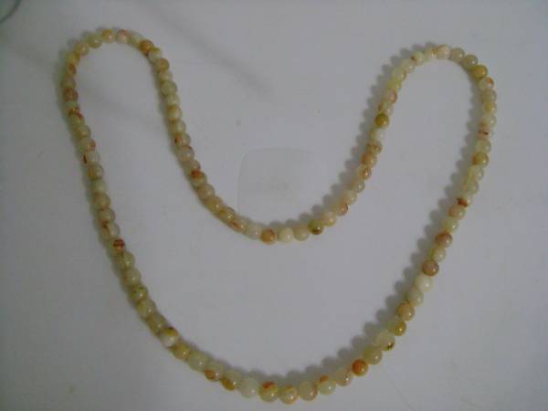 1970's MADE IN TAIWAN 36" HANDMADE HAND STRUNG BEADED ENDLESS NECKLACE. 8mm BEADS. NATURAL COLOR BEADS. FROM A SMOKE-FREE HOUSE. STORED IN JEWELRY BOX.