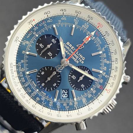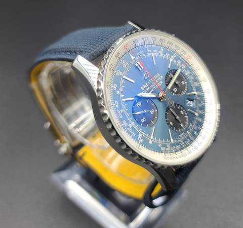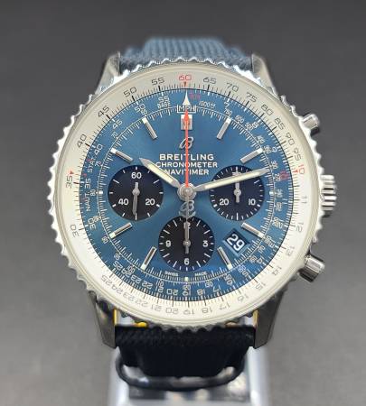 Breitling Navitimer Men's 42MM AB01212 SS W/ Blue Linen Strap 2021 -...