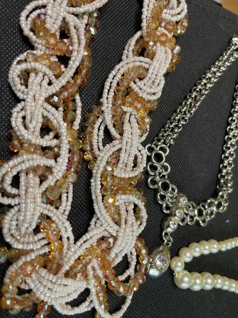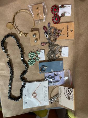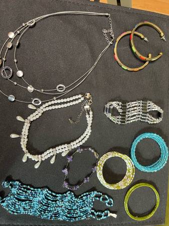 Costume jewelry, new & used, earrings, necklaces, handmade beaded bracelets, bracelets, rings All for one price
