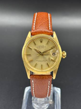 Women's Vintage Rolex Date 6629 Model: 6629 Movement: Automatic Case Material: 18K Yellow Gold Bracelet Material: Aftermarket Leather Year: 1964 Condition: Excellent Scope of Delivery: Watch Only...