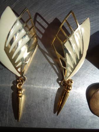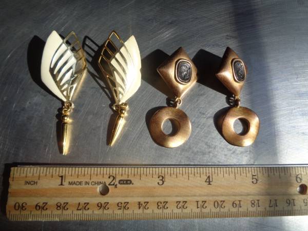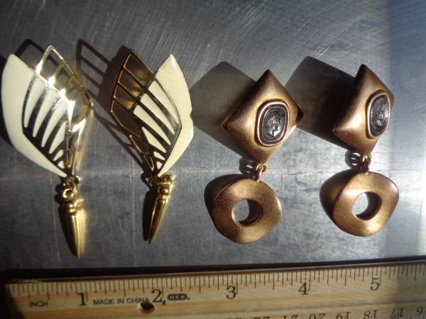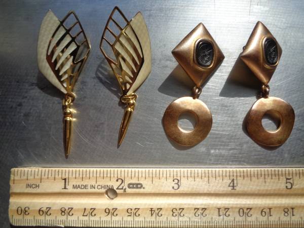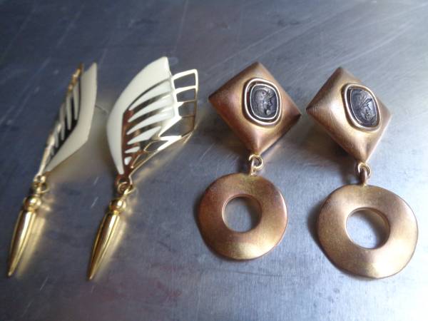 $15 for 2 sets earrings. Perfect like new condition. Bronze with Roman gladiator insert. Ivory color enamel with goldtone design. Very Collectible. In Gift Bag.