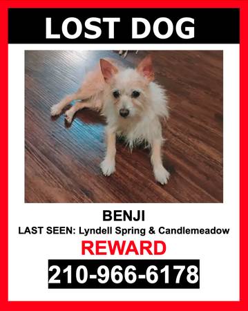 **MISSING SINCE 11/27/2025 AT 10:30 AM CST** BENJI is a MALE, CREAM / WHITE MARKINGS / IRISH TERRIER who escaped and was last seen near Lyndell Spring & Candlemeadow BENJI is wearing HIS COLLAR...
