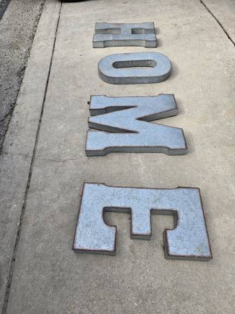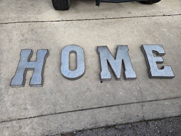 H-O-M-E galvanized metal letters. Original retail price, $30 each letter. Approximate height of each letter is 21" Please leave a contact number in your message.