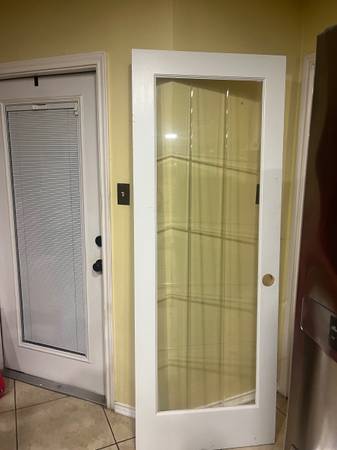 Beautiful Interior Etched 8-Lite Clear Glass White Finished Solid Wood French Interior Door Slab Dimensions: 30 in. x 80 in. x 1-3/8 in. Right hand swing If ad is up it is still available Located at...