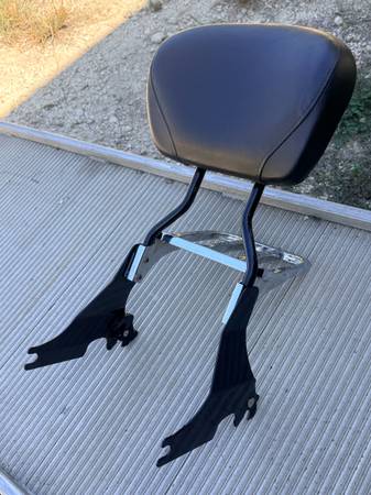2004-2020 Harley Sportster Sissy Bar with luggage rack. All Harley OEM parts and pad. You can swap out the quick detach mounts and it will work on any bike. The hoops and pad are universal parts. Cost over $600 new about 6 months ago. Will sell for $150 FIRM