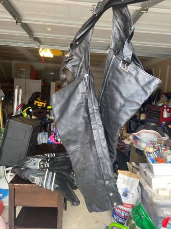 It's almost Christmas time. Leather jacket, 3 helmets and Leather chaps. Deal comes with rain gear top and bottom. It's a steal. If you have something to trade for then let me know and we can talk about it. Call Pablo at show contact info