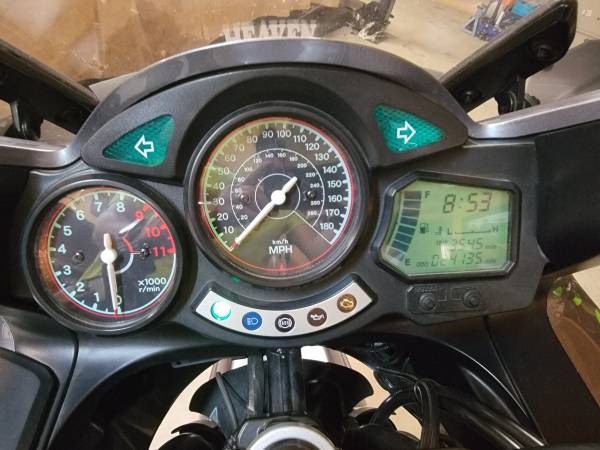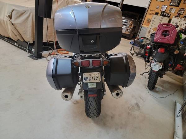 Silver yamaha sport touring bike. Garage kept, clean title, current tags and insurance.