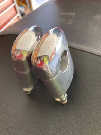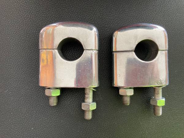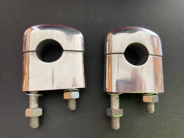BMW R60 R75 R80 R90 R100 /6 /7 Handlebar Clamp Mounts Airhead Brackets Polished, complete with nuts and washers, $30.00.