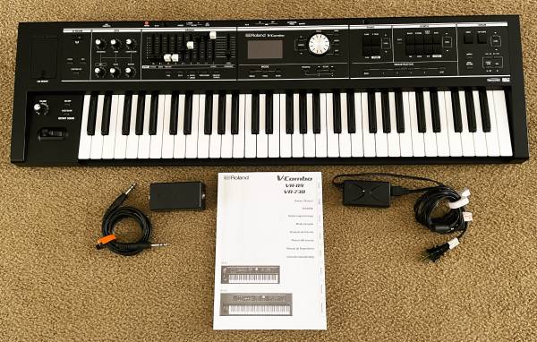 Selling my Roland VR-09B 61 Key Combo Keyboard with extras that include a Roland factory 61 Key Case (a $165 option), Flash Drive, Expression Pedal Converter Box (Adapts a Yamaha FC7 Pedal to VR-09, pedal not included), and also included is the factory manual. Scroll down for the factory info and specs on this awesome keyboard! Great organ, pianos, and additional sounds like synthesizer and drums all in a light easy to carry board. All features on the keyboard work flawlessly and the board looks and plays great. The only modification to the keyboard is a 1/4" jack was added on the rear to control the 'Fast/Slow' organ rotary speed control via a separate momentary pedal so that the stock "Damper' pedal jack can be used for a Sustain/Damper Pedal for the piano patches. (No pedals are included) This item sells for around $1400 new at the discount big box music stores, mine with the accessories is priced at $1100 firm, cash only. Can possibly deliver locally, will not ship. Text or Message me at Five Four One - Eight One Five - Zero Five Six One.