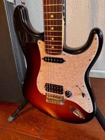 This is a like new USA 2006 Fender, Deluxe American Special Stratocaster With rosewood fret board and Tobacco Sunburst finish. It started its life as a HSS configuration (https://serialnumberlookup.fender.com/product/0115700300) but the owner wanted a single and a dual rail. He kept the dual rail and I had a new Seymour Duncan Humbucker installed. It can be easily put back to HSS if that's what you prefer.