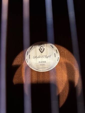 This is a beautiful, like new Guild D-240E. This guitar is like new as it has only been played a few times. There isn't a scratch or ding or any kind of blemish anywhere. The sound of this guitar is incredible and it plays wonderfully. These guitars sell for around $500 plus tax new at the big box stores. D-240E. Solid Sitka spruce and mahogany meet in a traditional dreadnought body with an arched back for a big sound and great playing experience. A real bone nut and saddle deliver golden-era sustain and clarity. And a 1960s red tortoiseshell pickguard