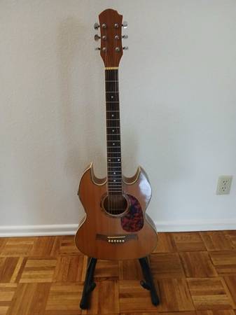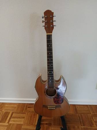 Acoustic Electric Guitar thin body with double cutouts.