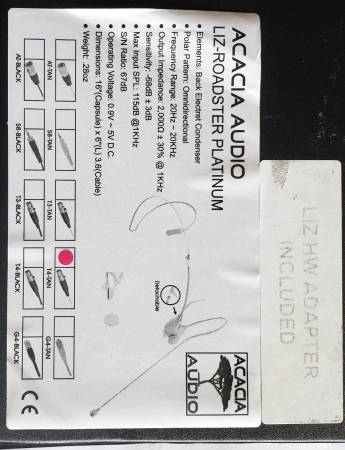 Acacia Audio LIZ Plat HS Mic with Shure XLR adapter. Research for your answers on this product. Perfect for church or speaking sessions. See my location on listing.