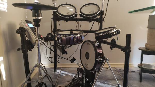 Please look at the picture for all the extras you will get with this drum set. I am a female and I took very good care of the set. I have two so it is at home. A lot of extras are included. I live...