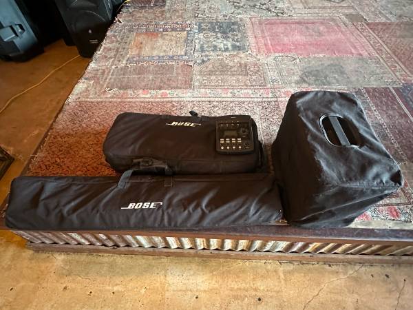 Selling my Bose L1 Model 1s PA system. Comes with the B1 Bass Sub Module, T1 Tonematch, all necessary cables to get it running and carry cases for all units except for the T1 Tonematch. Though I’m not the original owner of this system, I have used it on gigs and it has served me well. There is some cosmetic damage to the unit (which can be seen in the photos taken; most of which being from the previous owner) but nothing that impacts its functionality. The carry bag that holds the tower part of the system cannot be zipped all the way up as the zipper gets caught, but is able to be closed enough to carry the tower portion securely and safely. Other than cosmetics, PA sounds great and works great as well! Any questions, feel free to ask. No lowball offers!
