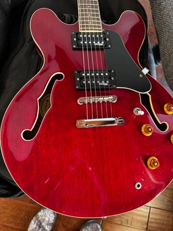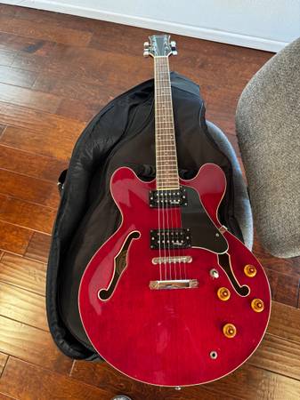 This is a Silvertone/Samick hollow body electric guitar. It is in like new condition and gorgeous.