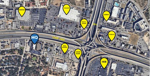 ** Medical Center, Stone Oak, Riverwalk, Downtown, 410, 281, San Pedro, Eilan, The Rim, La Canterra, Caslte Hills, Airport, Alamo Heights, Live Oak, Boerne, San Marcos, the Pearl