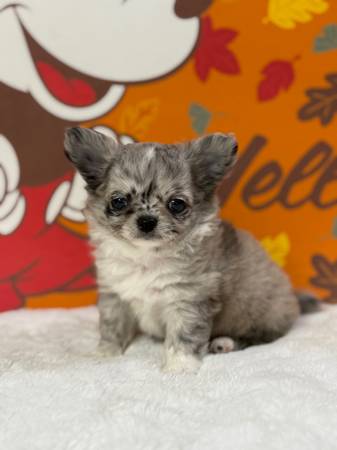 Long hair apple head male Chihuahuas available. Ready for new home 7 weeks, They are ready on November 1st Vet checked AKC registered 1 shot and deworms Rehoming fee Inf: