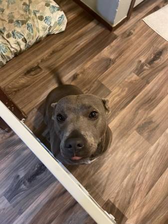 Me and my family moved into a new community that does not have a fence and will not let us put one up. We have been told her breed is not allowed in the community. They have given me and my family a hard time about having her 💔. She is good around kids, cats and other dogs. She loves water, sunbathing and loves going on walks. We take her to the trail every chance we get. She deserves a home with a proper yard we're she can run around and enjoy the sun. Her birthday is 3-10-2023. She is almost 3.
