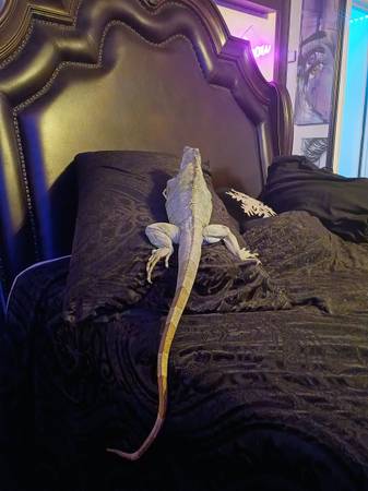 Very healthy. Indoor and outdoor enclosure. She potties in her box regularly. Requires fresh food every day. Can be handled, but she gets feisty, as most females do. Wouldn't recommend to someone with no experience.