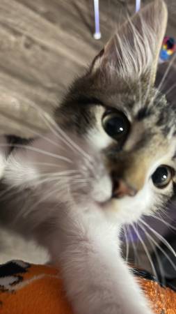 hello im super sad making this post ): , but i recently left my apartment and i cant take my gizmo with me . im not too sure how old he is he hasn’t gotten his shots yet he was too small when i had taken him to the vet . im asking 50 for a rehoming fee , he has a cat tower that he loves and uses so he doesn’t scratch anything other then that , he has a new bag of kitten food water /food bowl and litter box with a cover . hes a real big cuddler and loves attention great w kids.. i would really like him to be with his new family asap due to us being at my moms house