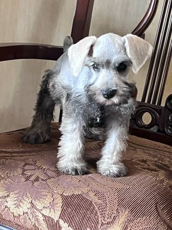 One male, one female. Two rounds of vaccines, dewormed, docked tail and breed haircut. Rehoming fee